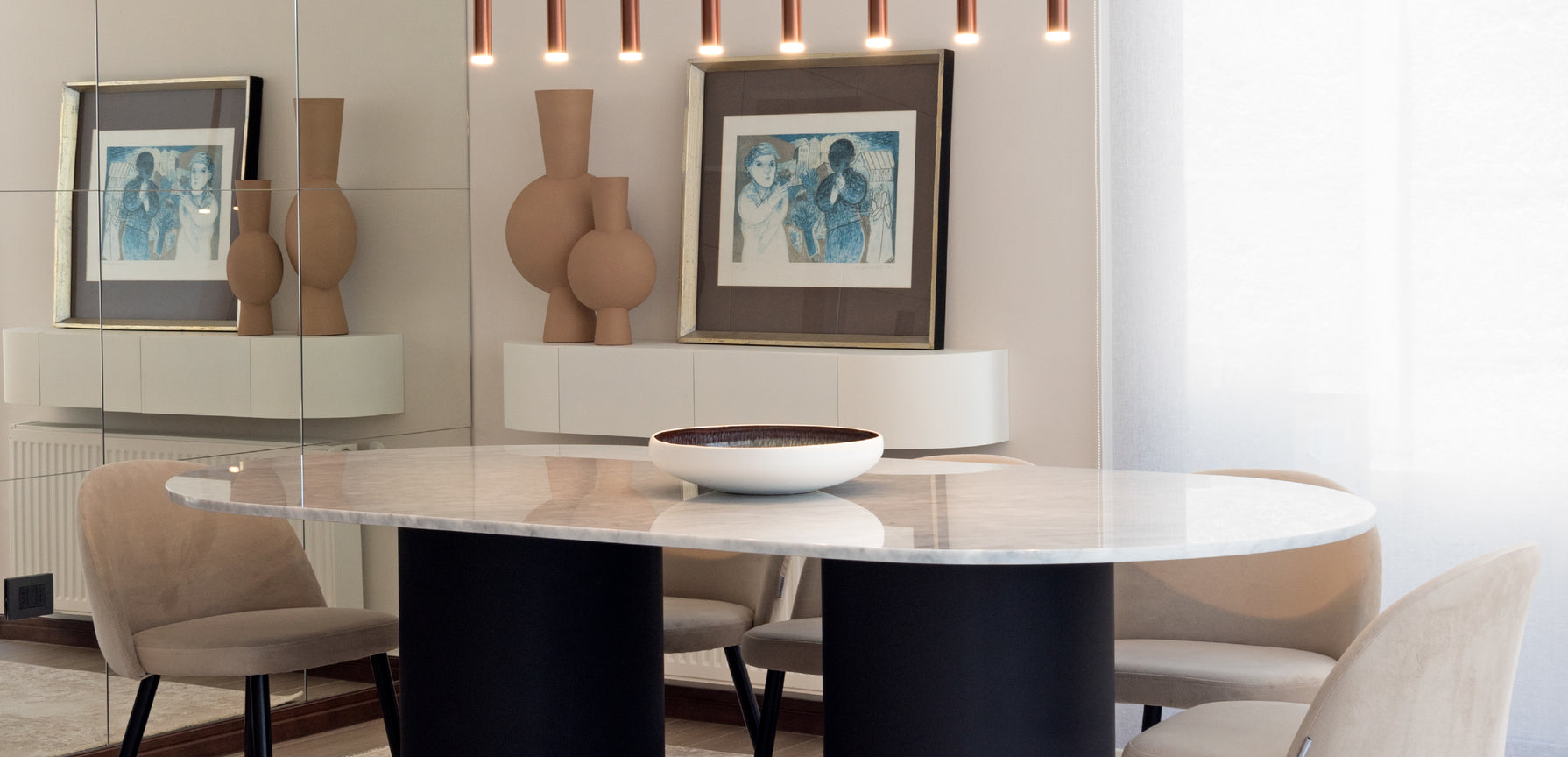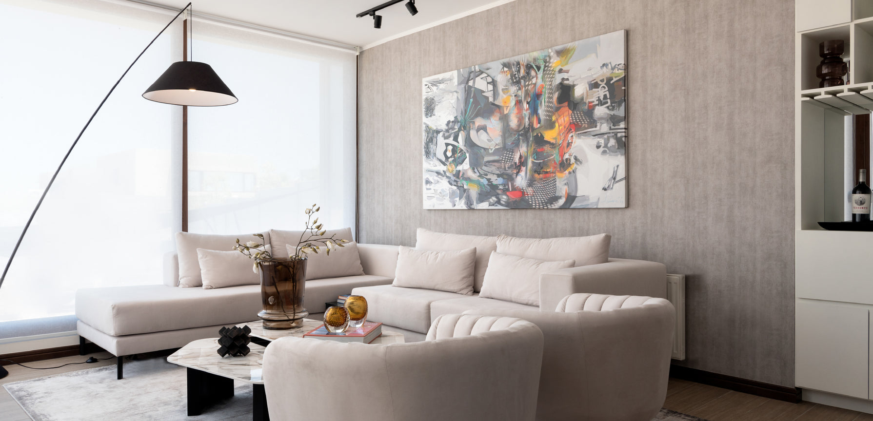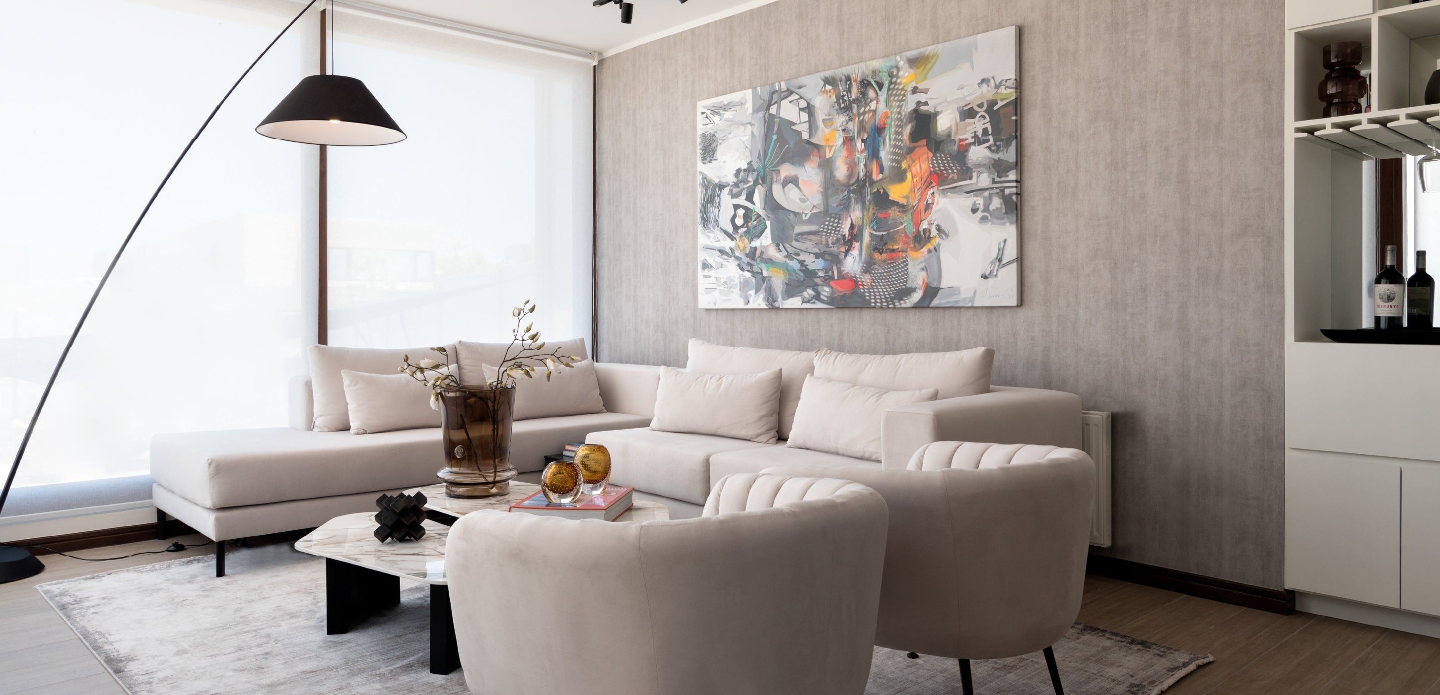 En este proyecto en Chicureo, los clientes buscaban un diseño moderno y sofisticado, atreviéndose a explorar nuevas ideas. En la planta baja se utilizaron colores cálidos y neutros, mientras que en la planta superior, destinada a la zona de los niños, se incorporaron tonos azules y detalles infantiles. Allí se diseñó una sala de estar común, creando un ambiente acogedor y divertido que permite que los más pequeños se sientan parte del espacio sin perder la estética general del proyecto.
