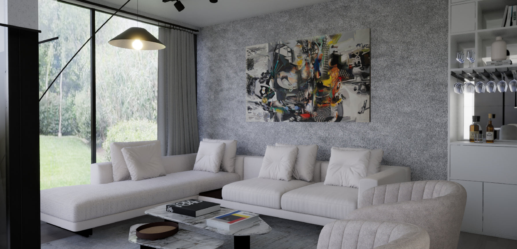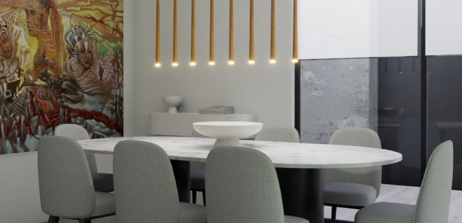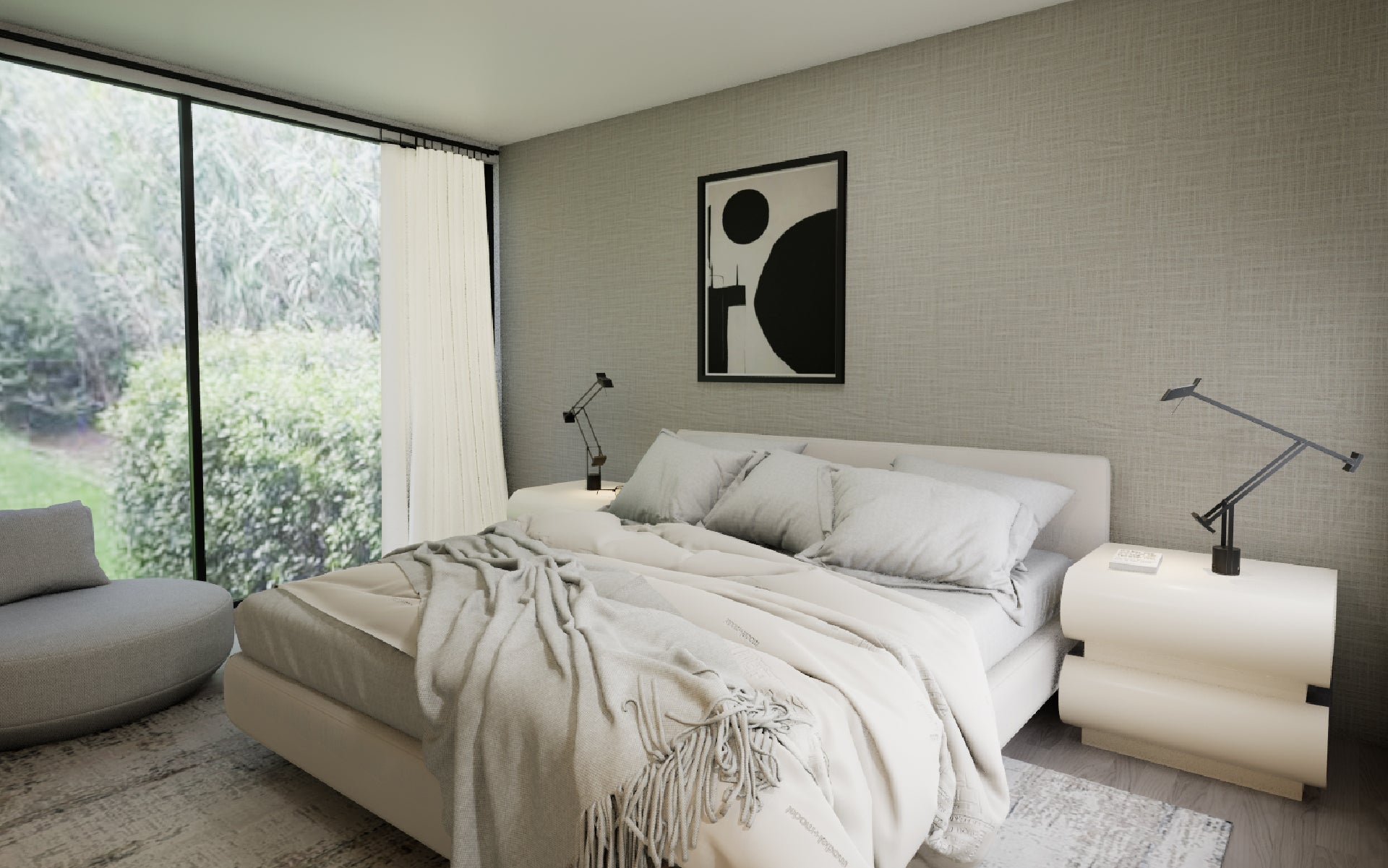 En este proyecto en Chicureo, los clientes buscaban un diseño moderno y sofisticado, atreviéndose a explorar nuevas ideas. En la planta baja se utilizaron colores cálidos y neutros, mientras que en la planta superior, destinada a la zona de los niños, se incorporaron tonos azules y detalles infantiles. Allí se diseñó una sala de estar común, creando un ambiente acogedor y divertido que permite que los más pequeños se sientan parte del espacio sin perder la estética general del proyecto.