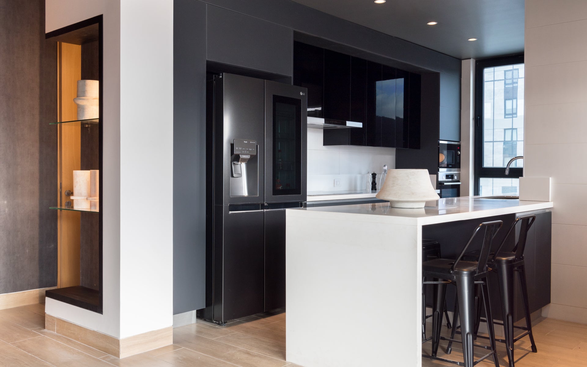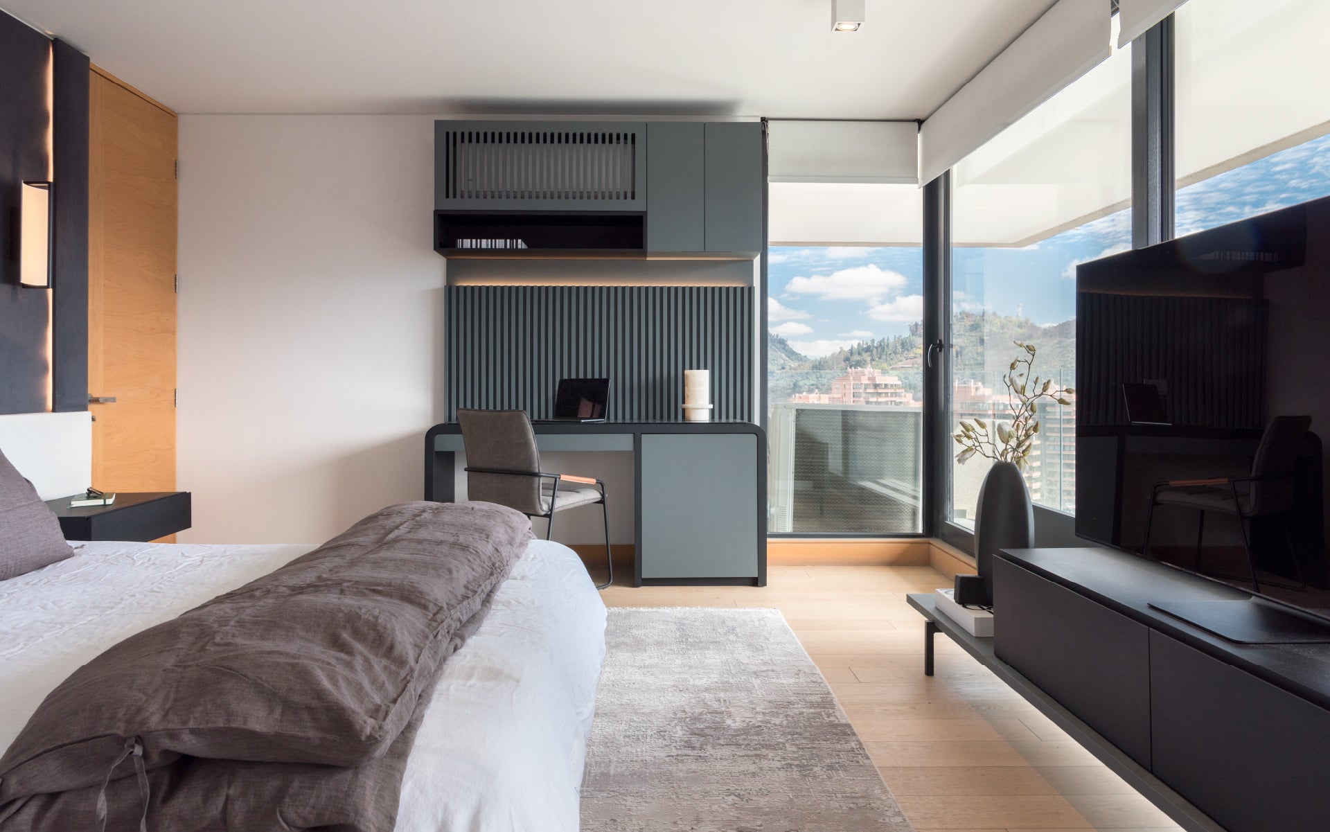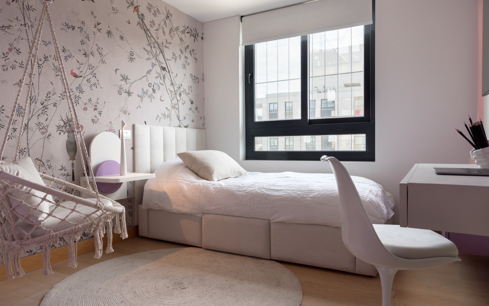 En este proyecto, los espacios combinados reflejan el gusto del padre, amante de los colores oscuros y el diseño atrevido, logrando un ambiente moderno, minimalista y armonioso para toda la familia. Por su parte, la habitación de su hija tiene un diseño mucho más femenino, con colores de niña como rosados y morados, manteniendo un estilo moderno y divertido que se adapta a sus preferencias.