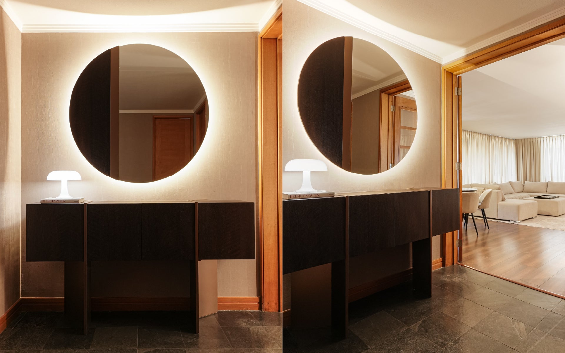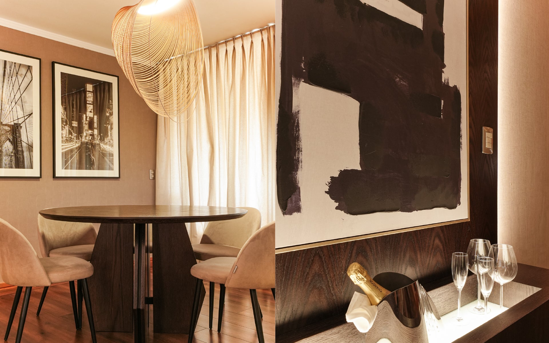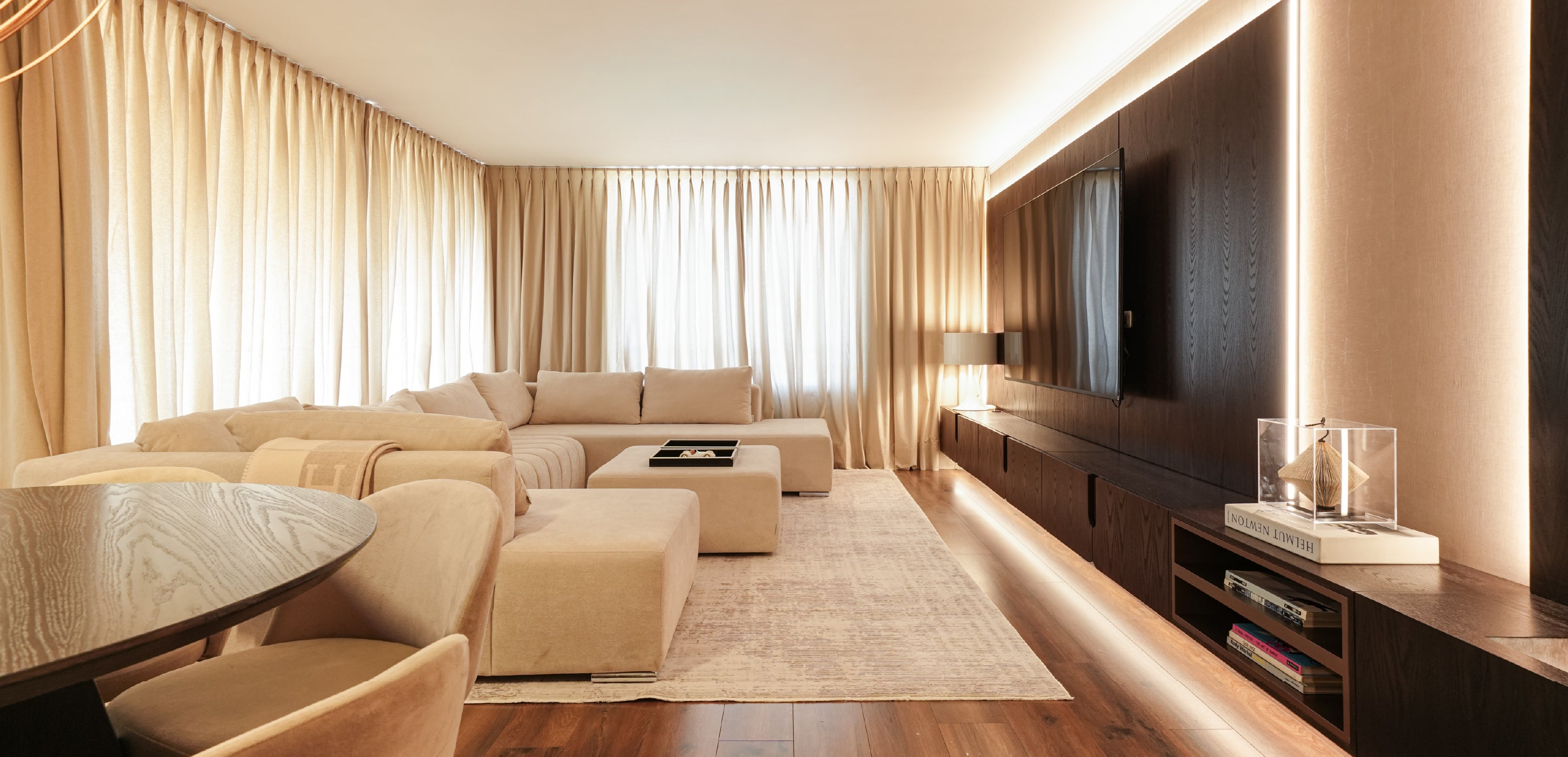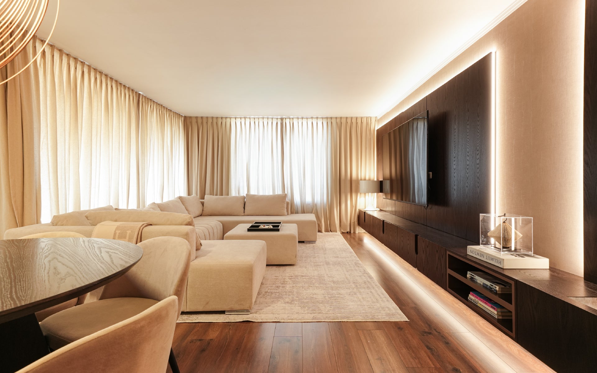 Este proyecto combina maderas oscuras, tonos neutros y una cuidada selección de texturas para crear un ambiente moderno, cálido y atemporal. La iluminación realza cada material y aporta profundidad, logrando un espacio elegante, coherente y perfectamente equilibrado.