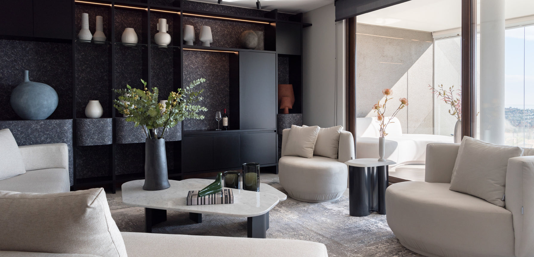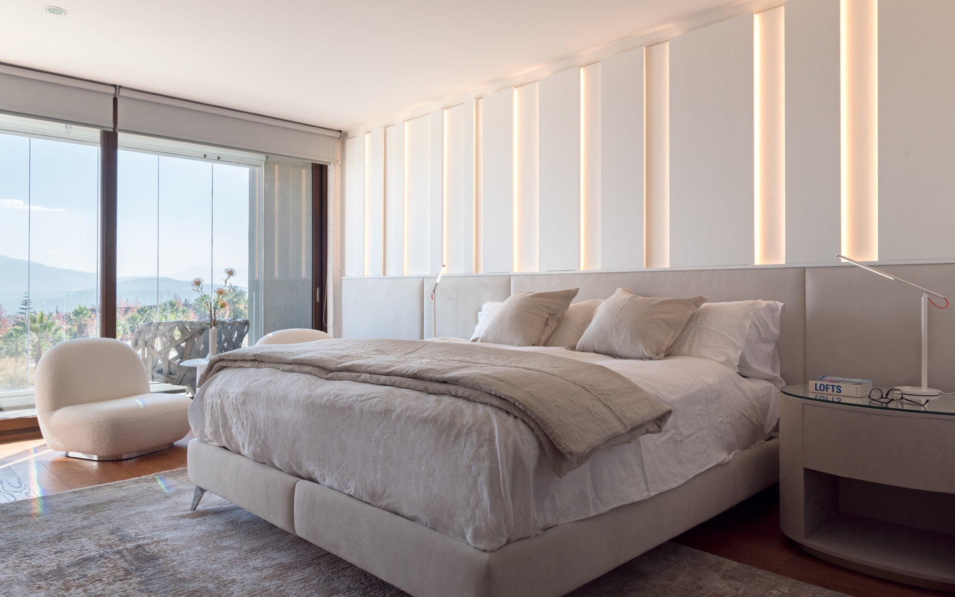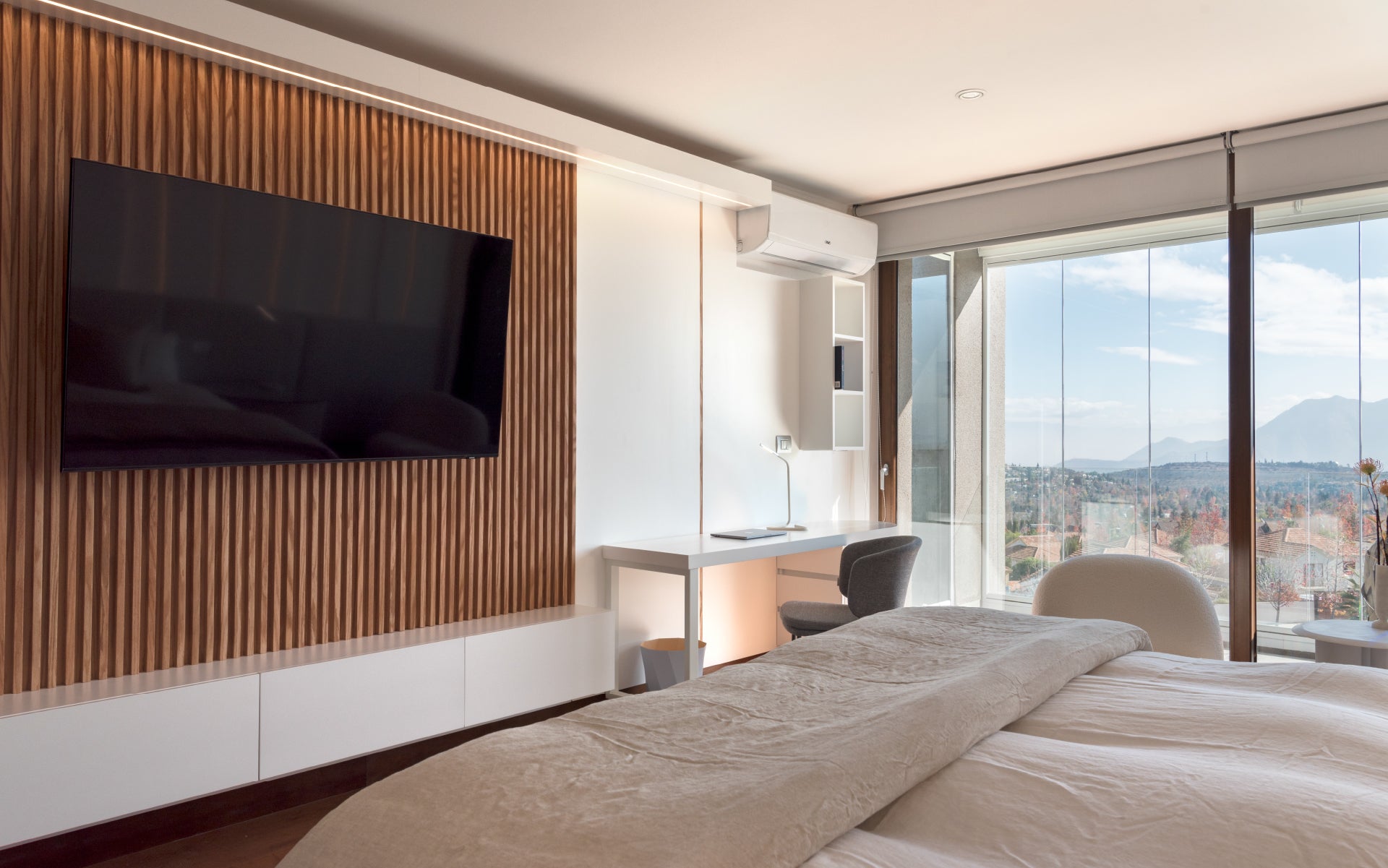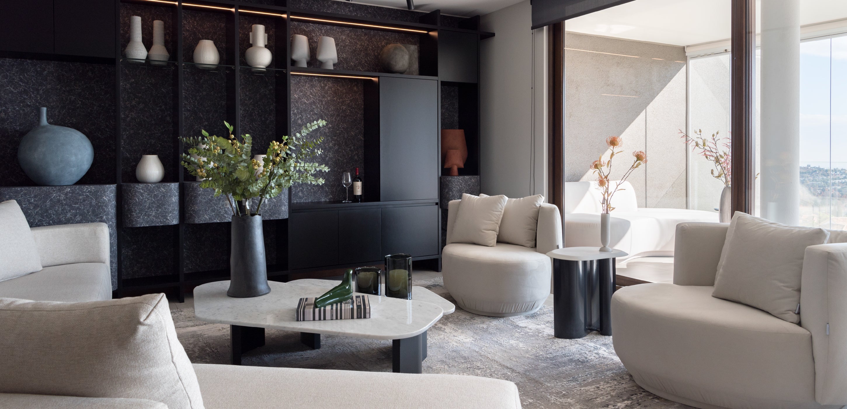 En el proyecto San Carlos de Apoquindo, ubicado en lo más alto del cerro, quisimos capturar y trasladar al interior la esencia de su entorno privilegiado. La vista, marcada por lo orgánico y lo verde, se convirtió en inspiración para los mobiliarios, incorporando texturas y formas que evocan la naturaleza. A través de materiales innovadores, papeles murales y líneas orgánicas, logramos que el interior refleje y dialogue con el paisaje que lo rodea.