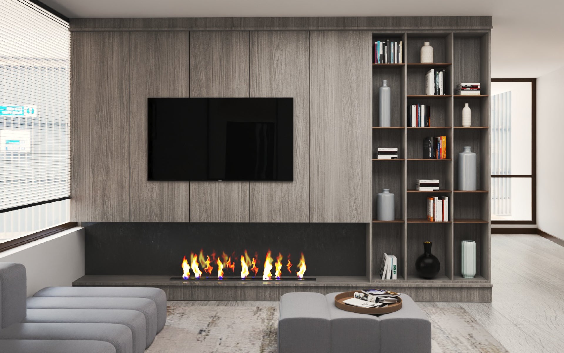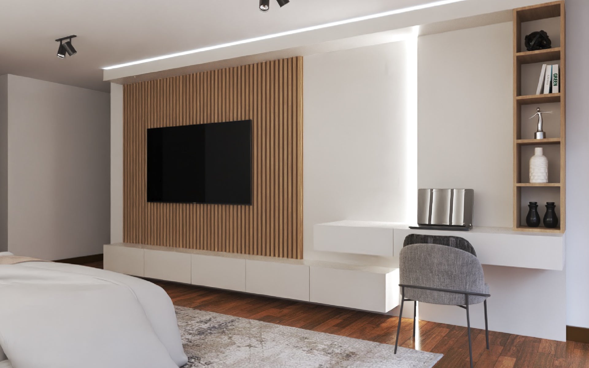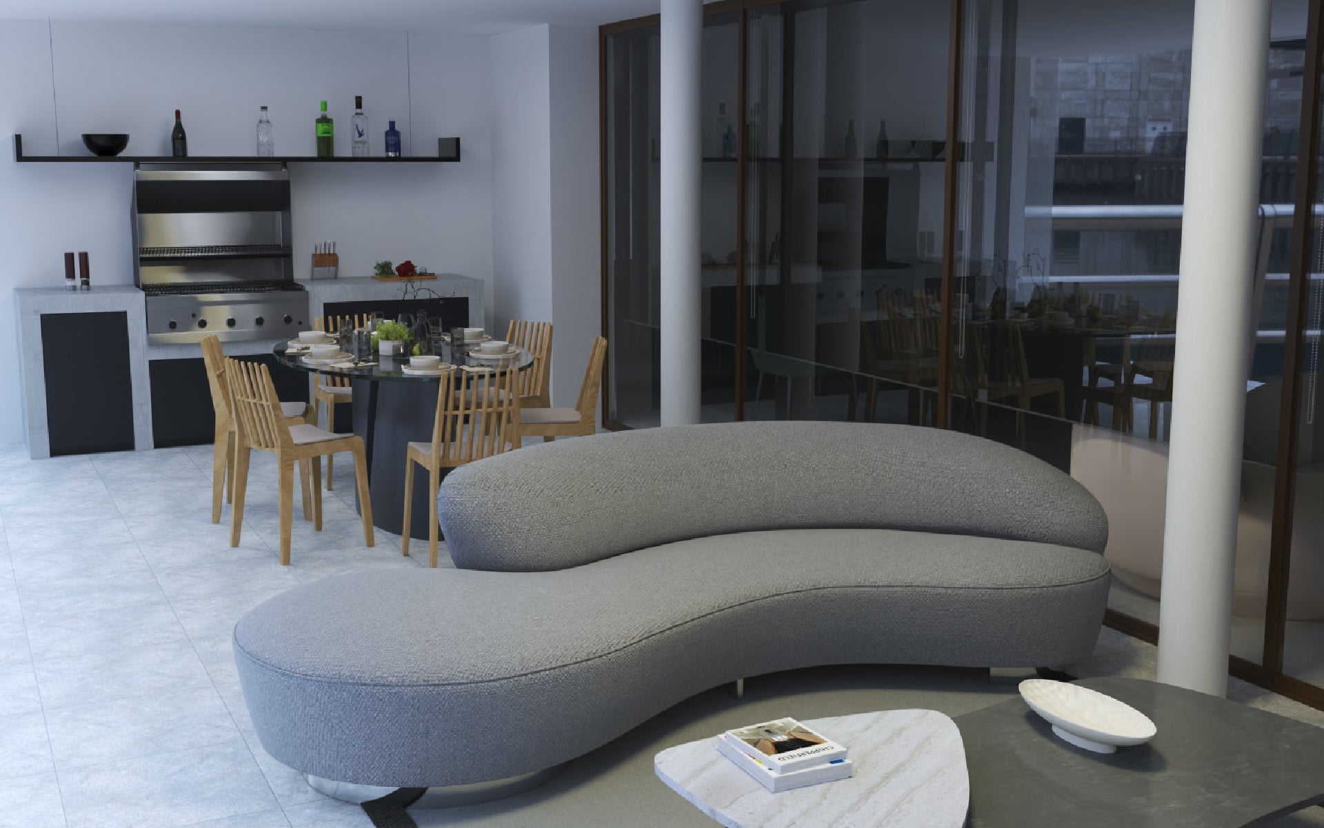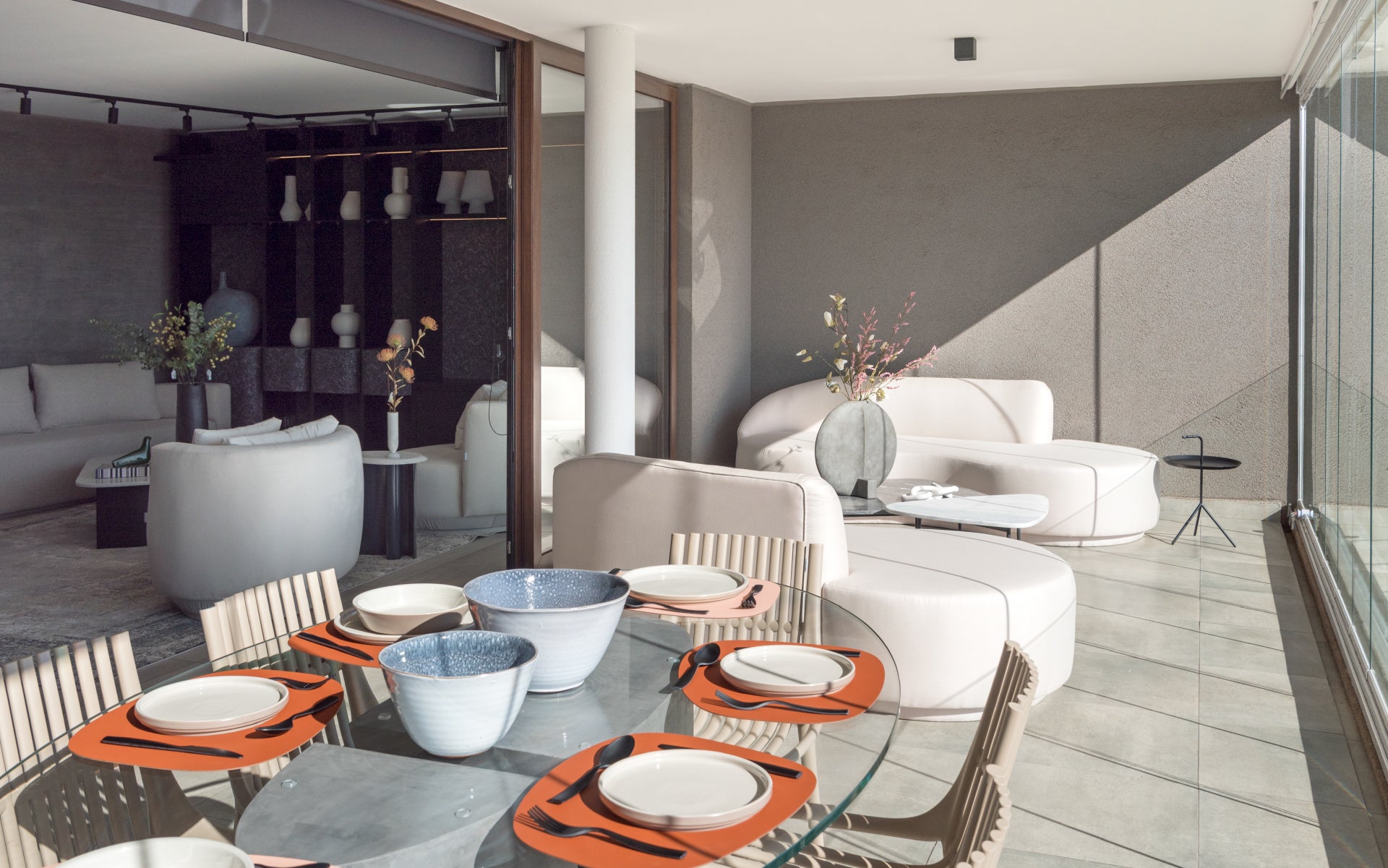 En el proyecto San Carlos de Apoquindo, ubicado en lo más alto del cerro, quisimos capturar y trasladar al interior la esencia de su entorno privilegiado. La vista, marcada por lo orgánico y lo verde, se convirtió en inspiración para los mobiliarios, incorporando texturas y formas que evocan la naturaleza. A través de materiales innovadores, papeles murales y líneas orgánicas, logramos que el interior refleje y dialogue con el paisaje que lo rodea.