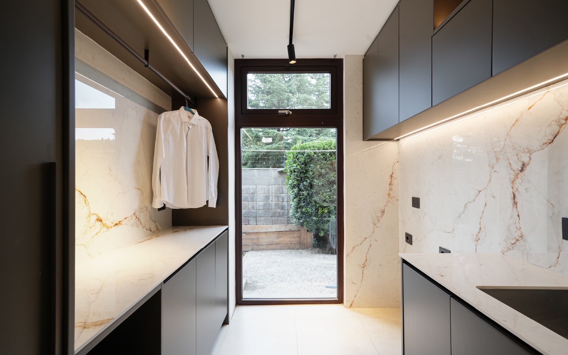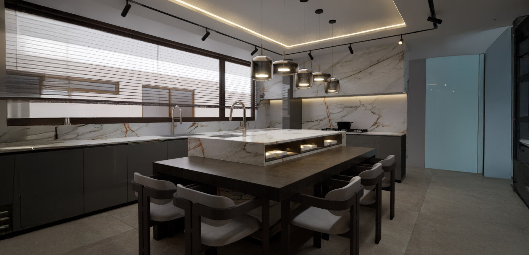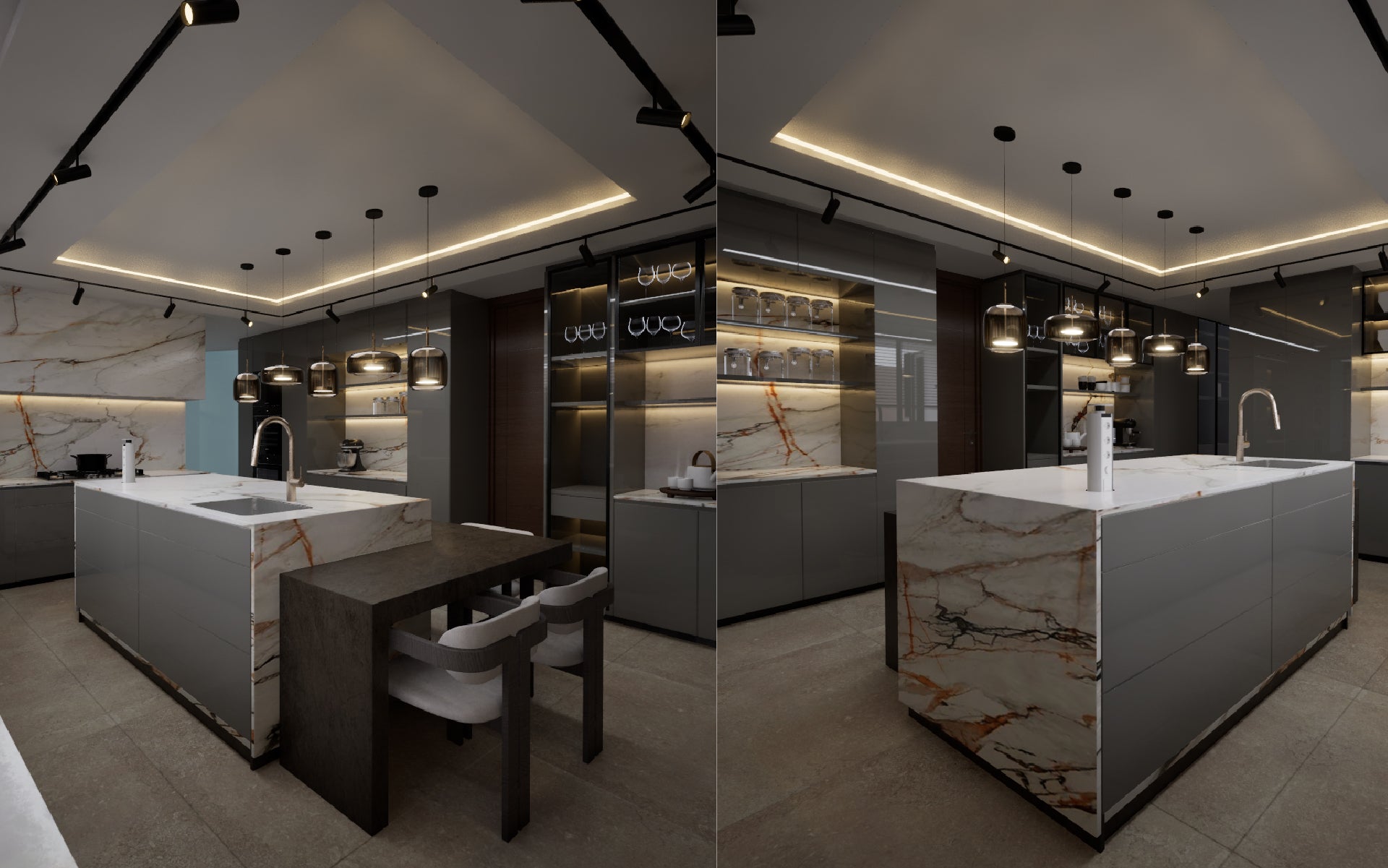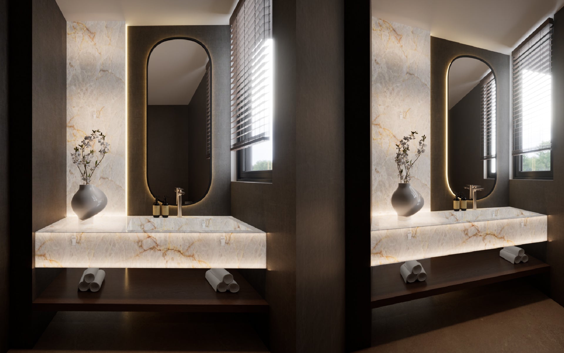 Un proyecto Jugado donde los materiales nobles y las piedras retroiluminadas se convierten en el hilo conductor del diseño. Cocina, hall y baño de visitas fueron desarrollados bajo un mismo lenguaje sofisticado y contemporáneo, logrando espacios coherentes, cálidos y llenos de carácter.