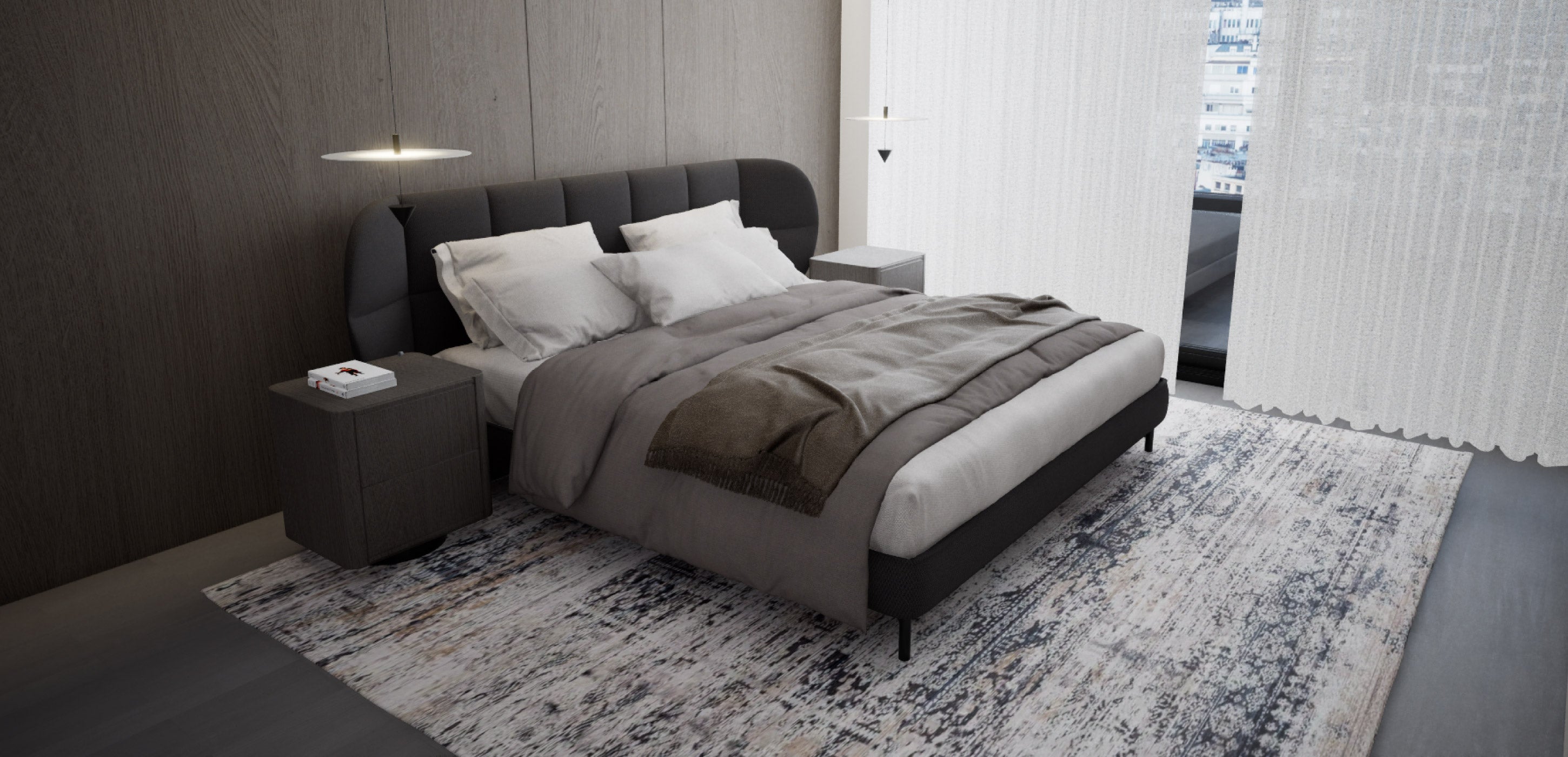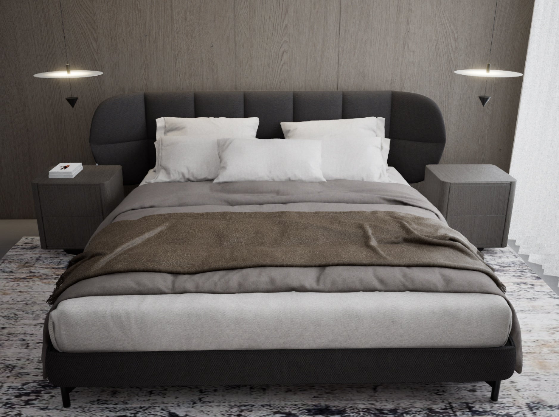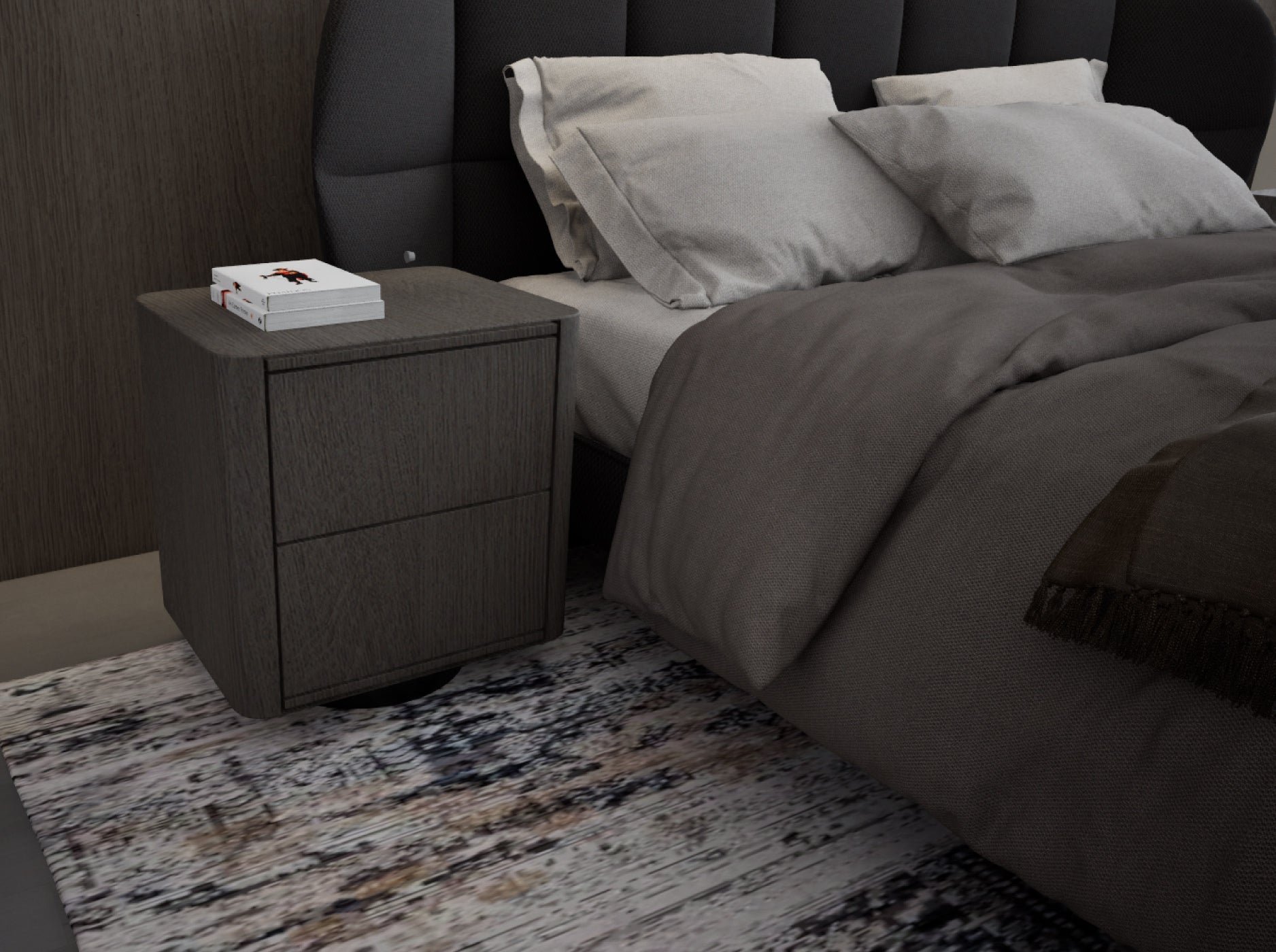 Esta base de cama se distingue por su diseño elevado y elegante, con patas de fierro negro que le otorgan un aire ligero y contemporáneo. Esta altura no solo aporta una sensación visual de mayor amplitud, sino que también permite realizar un aseo profundo y cómodo, sin necesidad de mover la cama. Fabricada en madera y finamente tapizada, combina solidez con sofisticación. Disponible en tamaños Queen, King y Super King, se adapta a las distintas necesidades y estilos de cada espacio, entregando siempre funcionalidad y diseño atemporal.