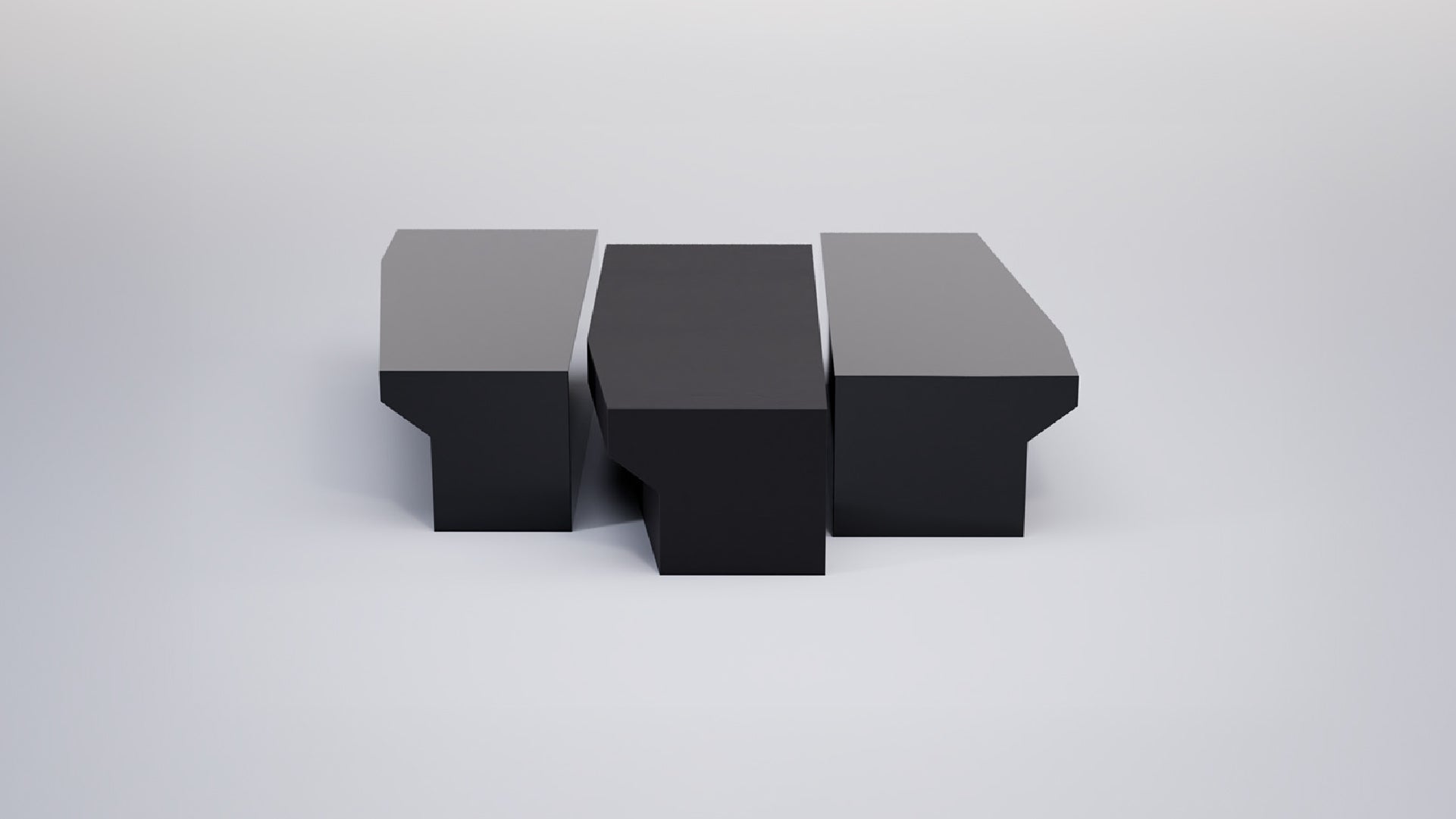 Estas mesas de centro son una propuesta escultórica que juega con la geometría y el contraste. Pueden disponerse juntas o de manera individual, adaptándose a diferentes momentos y espacios dentro de la casa, lo que las convierte en piezas versátiles y dinámicas. Su diseño combina acabados lacados brillantes y mates, generando un interesante juego visual de luces y texturas. Más que un conjunto funcional, son piezas de diseño que aportan carácter, modernidad y un aire arquitectónico a cualquier ambiente.