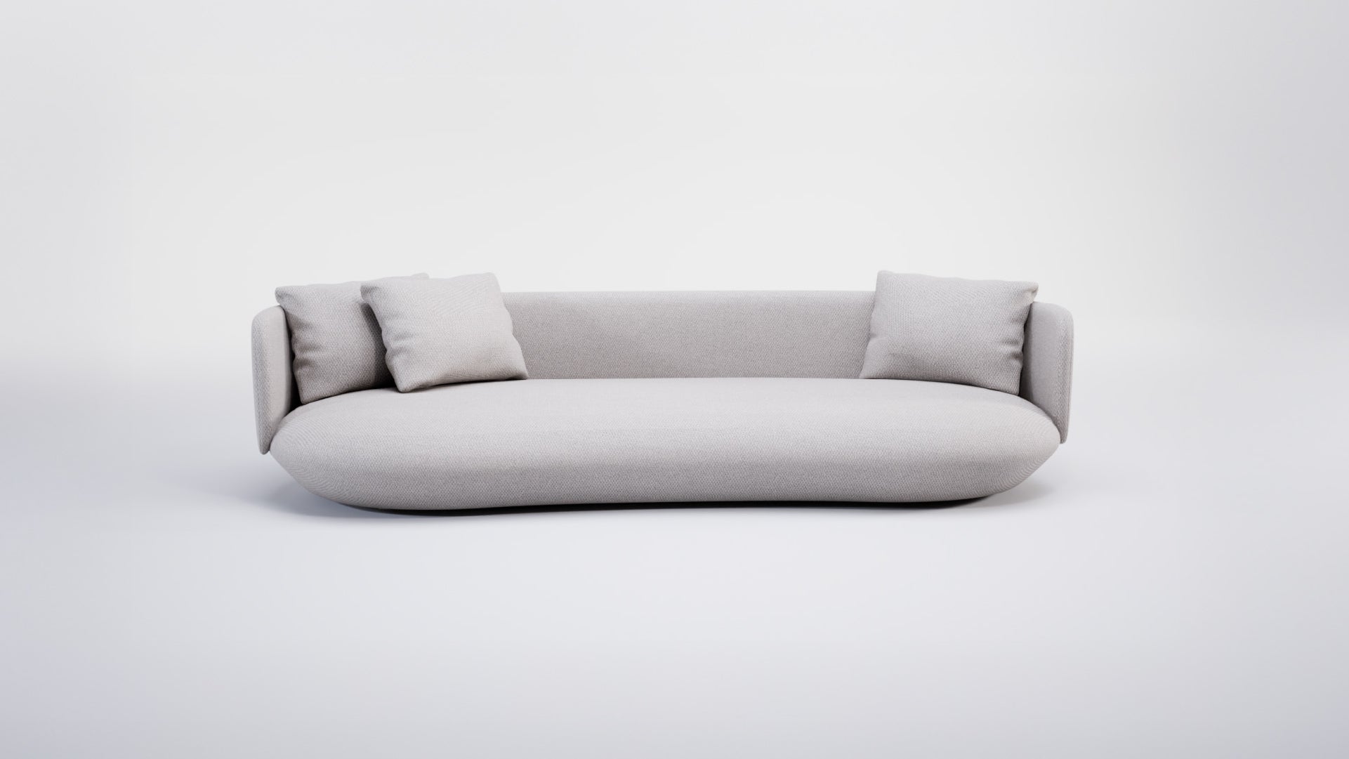 Tapizado en tela, ofrece una durabilidad excepcional sin perder suavidad ni elegancia al tacto. Su respaldo curvo y cojines sueltos potencian la comodidad, mientras que la silueta fluida aporta un carácter sofisticado y atemporal.