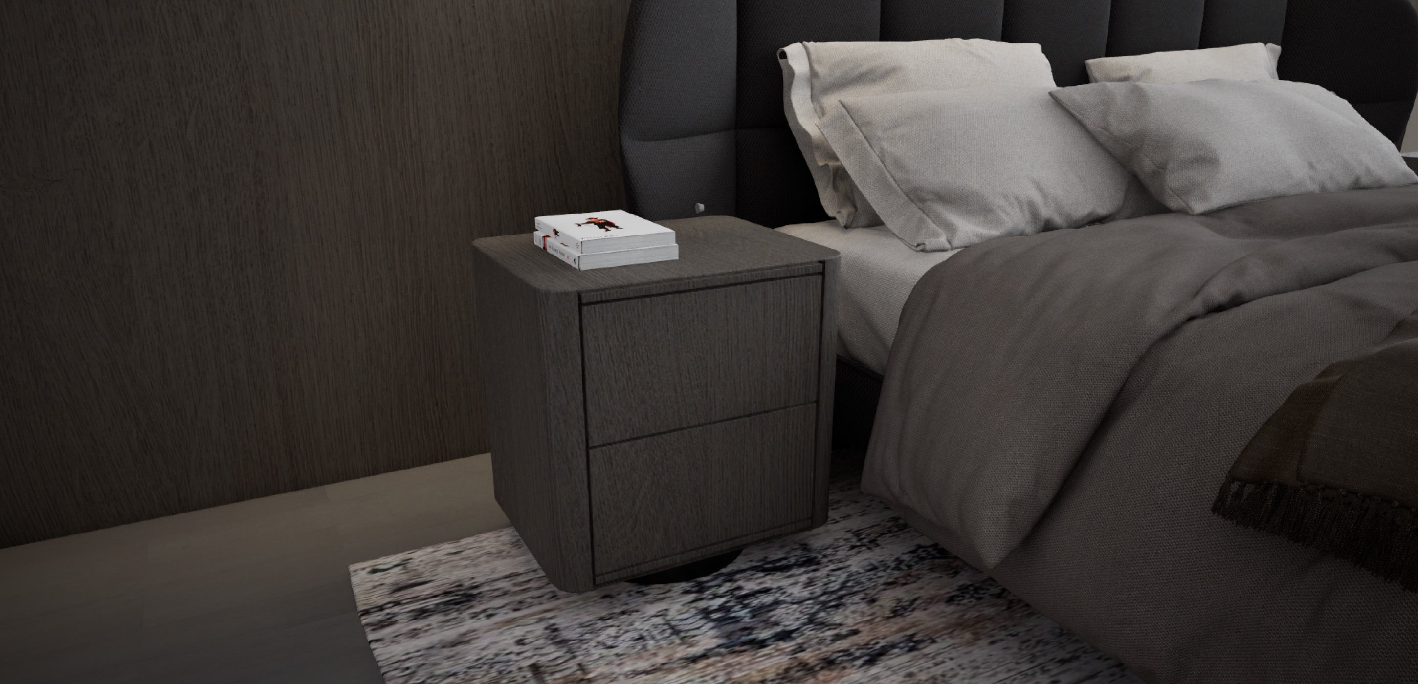 Este velador se distingue por sus cantos curvos y su base circular, que aportan suavidad y un aire moderno. Su tamaño versátil se adapta a todo tipo de espacios, mientras que sus dos cajoneras ofrecen la comodidad de guardar lo esencial con discreción. Enchapado en madera teñida café, entrega calidez al ambiente y un carácter acogedor, equilibrado con la solidez de su zócalo Lacado negro circular. Una pieza que combina modernidad y calidez, logrando un diseño atemporal y funcional.